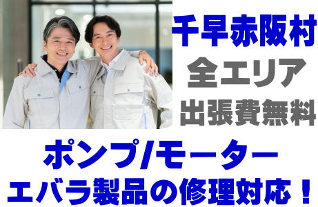 千早赤阪村でEBARA製品(井戸ポンプ、水中ポンプ)の故障修理はエバラ取り扱い店の当店が即日対応いたします!