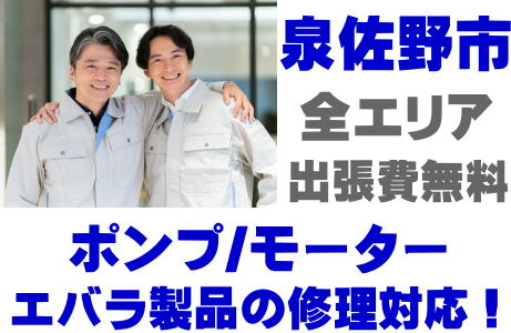 泉佐野市でEBARA製品(井戸ポンプ、水中ポンプ)の故障修理はエバラ取り扱い店の当店が即日対応いたします!