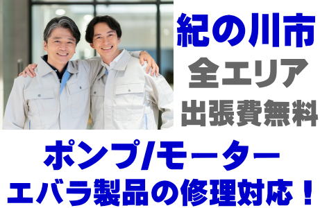 紀の川市でEBARA製品(井戸ポンプ、水中ポンプ)の故障修理はエバラ取り扱い店の当店が即日対応いたします!