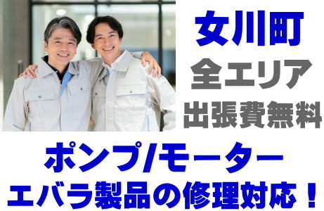 女川町でEBARA製品(井戸ポンプ、水中ポンプ)の故障修理はエバラ取り扱い店の当店が即日対応いたします!