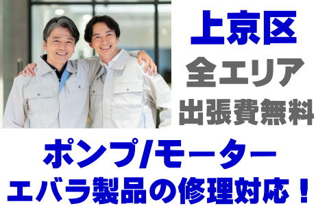 上京区でEBARA製品(井戸ポンプ、水中ポンプ)の故障修理はエバラ取り扱い店の当店が即日対応いたします!