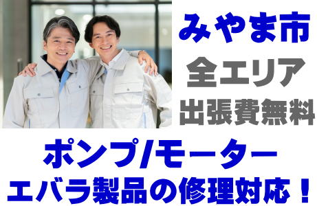みやま市でEBARA製品(井戸ポンプ、水中ポンプ)の故障修理はエバラ取り扱い店の当店が即日対応いたします!